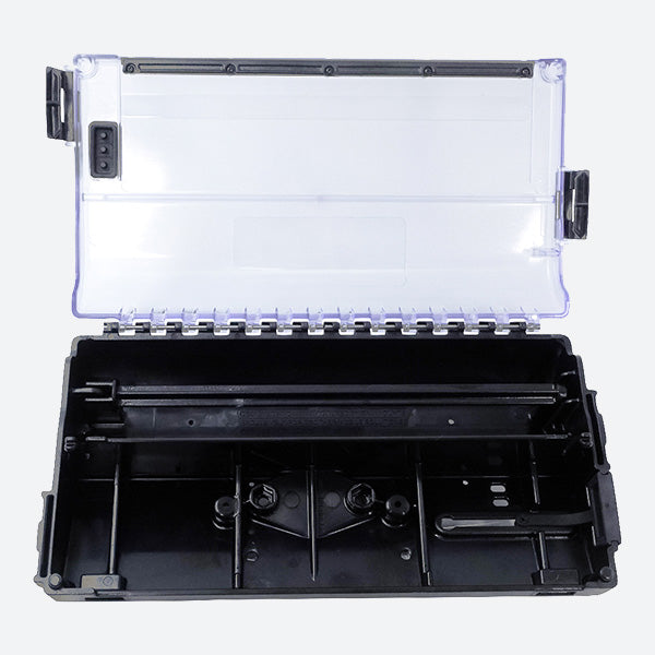 - Provides a convenient clear lid for easy paper and document management