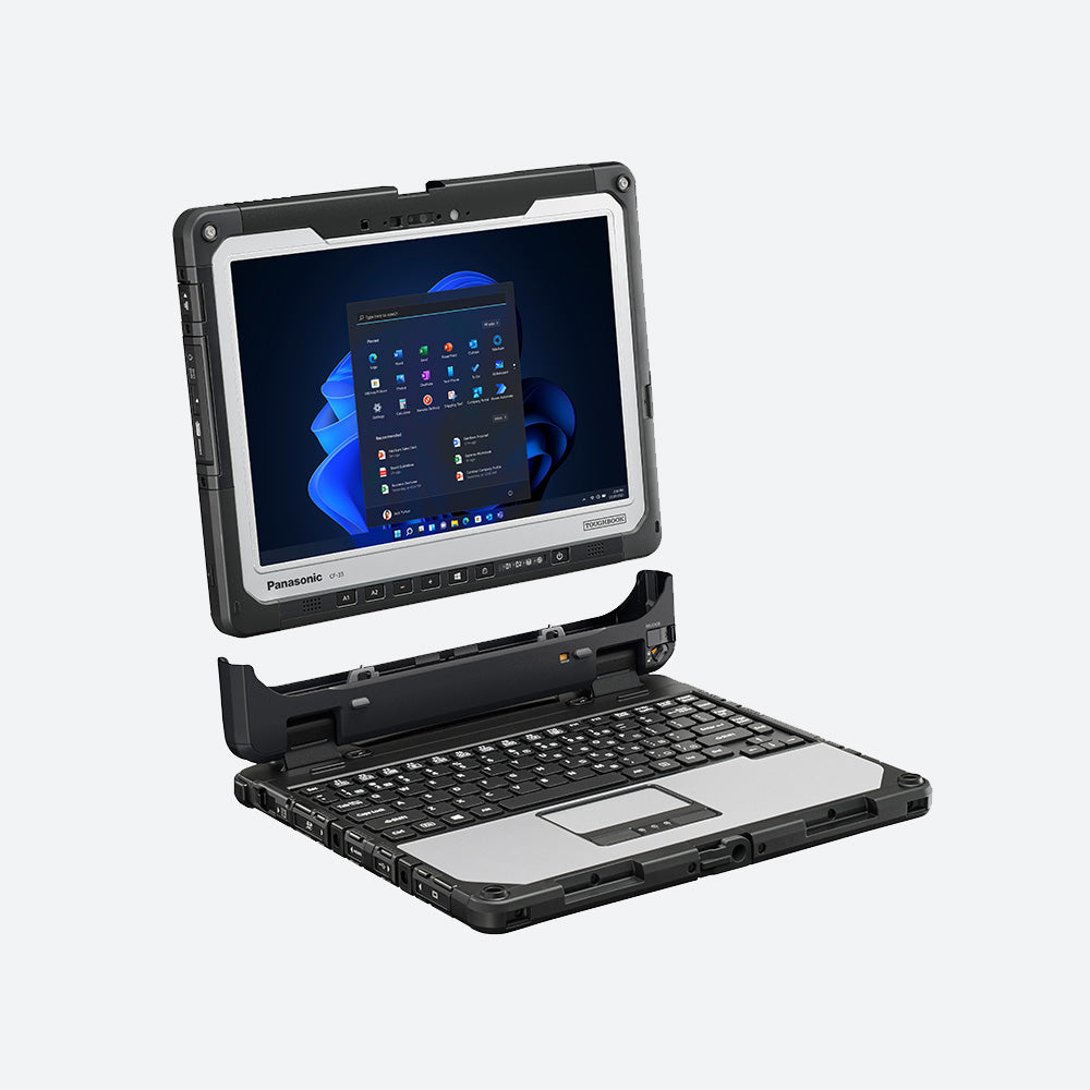 The fully-rugged Panasonic Toughbook CF-33 is the larger unit in Panasonic's innovative 2-in-1 family. With a tablet measuring at 12" and an optional keyboard, the CF-33 provides ample workspace without compromising its rugged nature or portability. Able to provide the portability of a tablet, the CF-33 can also deliver the utility of a full laptop. Like most Toughbooks, the CF-33 offers applicable optional features such as 4G LTE connection and dedicated GPS, making it the perfect fit for many job codes that require in the field connectivity and autonomy. With users having the option between the smaller FZ-G2 or the larger CF-33, Panasonic has ensured that Toughbook customers have options that fit any requirement.