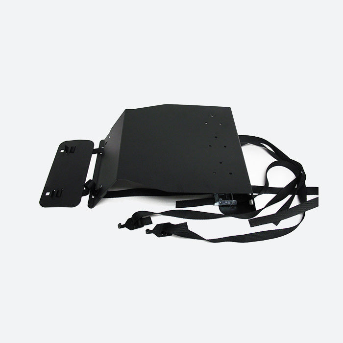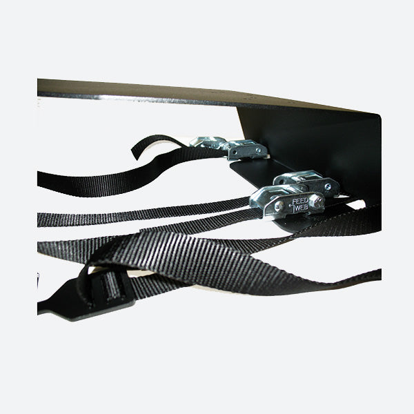 - For added security to the front of the mount, a second set of straps can be looped under the seat and hooked to the plates.