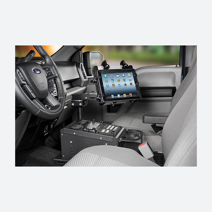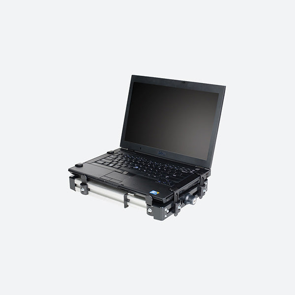 The 7160-0250-03 NotePad V Universal Computer Cradle is built with CAM back clips for easy installation of medium sized tablets and laptops. The CAMs on the 7160-0250-03 allow for easy and quick adjustment to secure the tablet or laptop while the adjustable clips can be set to accommodate the proper computer depth. The 7160-0250-03 is considered a universal solution but measurements should be taken of the tablet or laptop that is planned to be mounted to confirm compatibility. Our sales team would be happy to create a custom quote for the 7160-0250-03 or a help convert it into a complete computer mount, give us a call at 816-388-0035