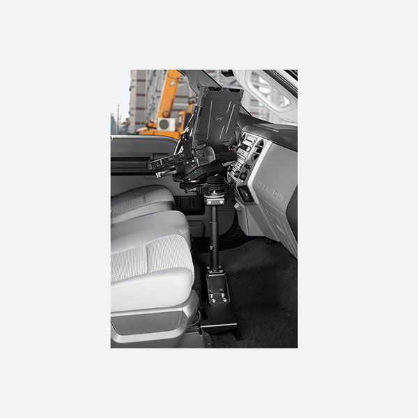 Built out of heavy duty steel, the Gamber Johnson 7160-0281 is compatible with the 2011-2016 Ford F-250-550 and 2016+ F-650/750 Super Duty vehicle line. Mounting without requiring drilling to the passenger side seat bolts, the 7160-0281 installs easily and includes a DS-STEP offset platform to help push the computer mount closer to the center of the vehicle. Once paired with the necessary lower tube, upper pole, motion attachment and computer dock or cradle, the 7160-0281 can provide a stable and secure computer mounting system. The 7160-0281 can be purchased as a stand alone piece of equipment or as a complete pedestal mounting kit under Gamber Johnson part number 7170-0133. Give our sales team a call at 816-388-0035 for any questions about the 7160-0281 or to receive a custom quote!