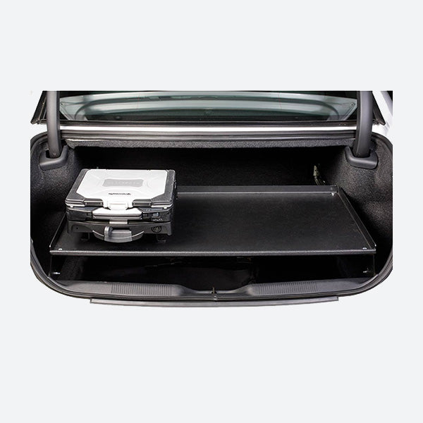 Built out of a strong but lightweight aluminum alloy, the Gamber Johnson 7160-0336 Upper Trunk Shelf fits the Dodge Charger Police vehicle with model years 2011 to current. Installing relatively easily, the 7160-0336 trunk shelf provides additional storage organization or a convenient mounting location for rear installed electronics. Preserving valuable cabin room, a trunk mounted computer workstation is a viable option for many police response purposes and the 7160-0336 allows for easy access. Our sales team would be happy to help built a custom quote for the 7160-0336 or a complete equipment solution for the Dodge Charger including the in-vehicle computer such as a Panasonic Toughbook or Getac rugged laptop. Give our sales team a call at 816-388-0035