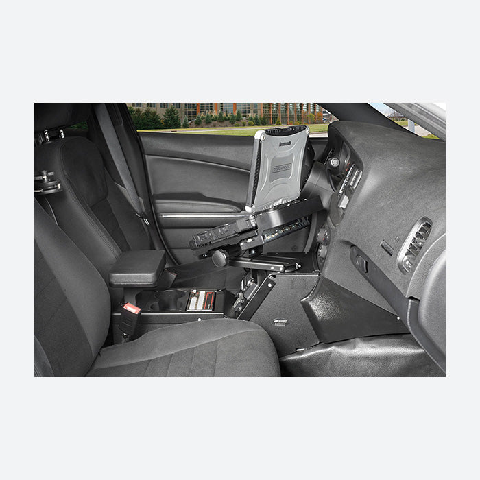 Installing without requiring drilling into a 2011-2020 Dodge Charger Police Vehicle, the Gamber Johnson 7160-0353 console box is built out of durable and heavy duty steel and materials for maximum durability. The 7160-0353 console box mounts directly to the transmission hump of the vehicle. The console box includes double mounting points for computer mounting motion attachments to provide the optimal ergonomics to the user. While the 7160-0353 doesn't include any accessories, it is compatible with a wide range of Gamber Johnson equipment including armrests, motion attachments, cupholders, storage pockets and more, give our sales team a call at 816-388-0035 to get help on completing your console solution today!