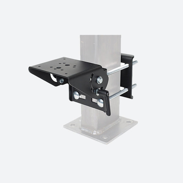 - Plate sandwiches the overhead guard leg and allows user to position the device at the desired height position
