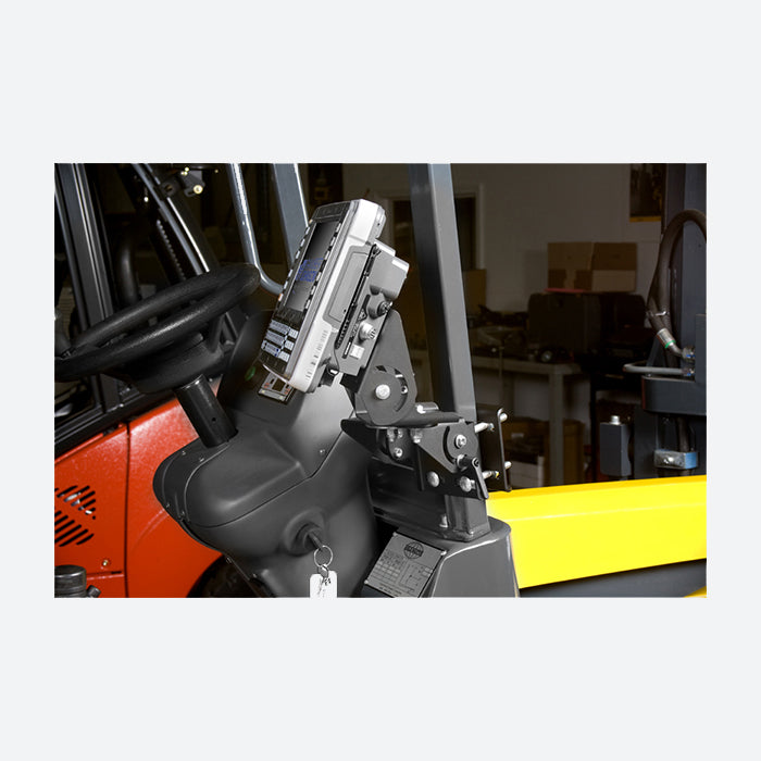 Able to mount easily to an overhead guard leg by clamping with bolts sandwiching two heavy plates, the Gamber Johnson 7160-0367 Dual Clam Shell with Large Plate mount is a great stand alone mount. The large plate clamp is compatible with overhead guard legs between 2.5 and 5.0 inches wide, if the overhead guard is smaller please consider the Small Plate Dual Clevis Mount part number 7160-0366. With AMPS, NEC and 75 mm VESA mounting patterns, the 7160-0367 is able to accommodate a wide variety of motion attachments, mounts and docks while the dual clevis system allows the user to position the computer to the ideal location. Built out of heavy gauge and rugged materials, the 7160-0367 and most other Gamber Johnson parts are built to withstand the heaviest of abuse and are perfect for material handling work conditions. Let a sales rep help build the 7160-0367 into a complete computer mounting solution with a computer dock or cradle and other suggested pieces, give us a call at 816-388-0035