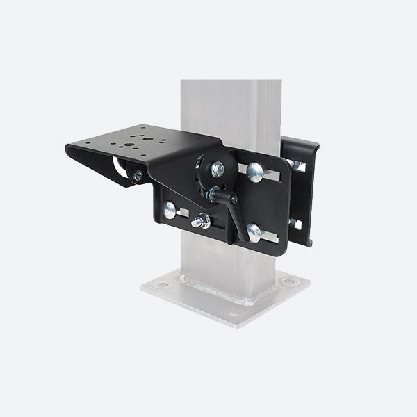 - Plate sandwiches the overhead guard leg and allows user to position the device at the desired height position