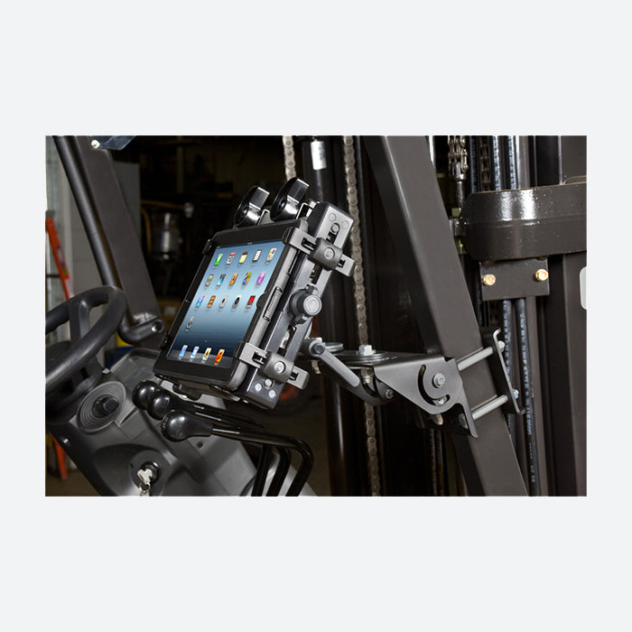 Able to mount easily to an overhead guard leg by clamping with bolts, the Gamber Johnson 7160-0370 Clam Shell with Large Plate can be a stand alone mount or be paired with other Clevis motion attachments and extending arms to add increased functionality. With AMPS, NEC and 75 mm VESA mounting patterns, the 7160-0370 is able to accommodate a wide variety of motion attachments, mounts and docks. With a 160 up and down tilt, the included clevis would be perfect for a low profile tablet dock solution. Built out of heavy gauge and rugged materials, the 7160-0370 and most other Gamber Johnson parts are built to withstand the heaviest of abuse and are perfect for material handling work conditions. Let a sales rep help build the 7160-0370 into a complete computer mounting solution with a computer dock or cradle and other suggested pieces, give us a call at 816-388-0035