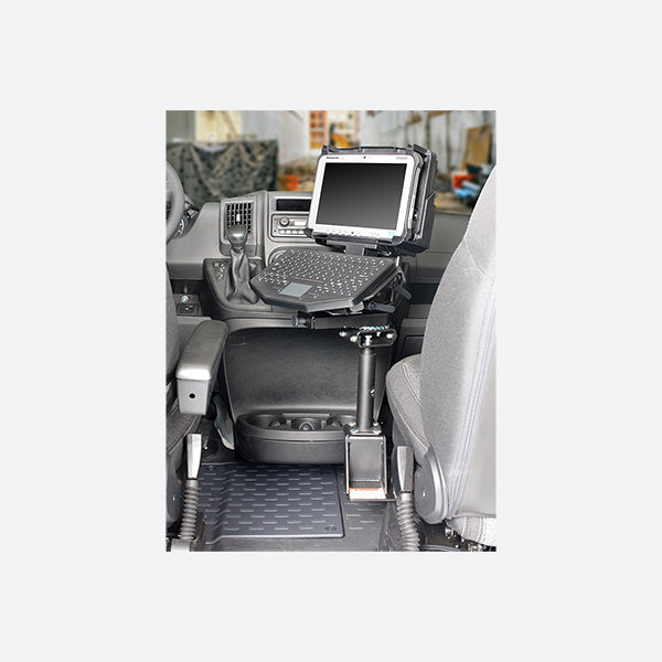 Built for the Ram ProMaster 2014 to current, the Gamber Johnson 7160-0527 vehicle base is a great foundation for a rugged computer mount. With an included offset universal mounting step (Gamber Johnson part number DS-STEP) the 7160-0527 helps keep the computer mount close to the center of the vehicle and preserves passenger leg room. Built out of heavy duty steel, the 7160-0527 installs into the Ram ProMaster without having to drill into the vehicle by attaching to the passenger side seat bolts. If you have questions about the 7160-0527 or are interested in turning it into a complete vehicle mounting solution, send your requirements to sales@ruggedordie.com and our sales team will respond within ones business day!