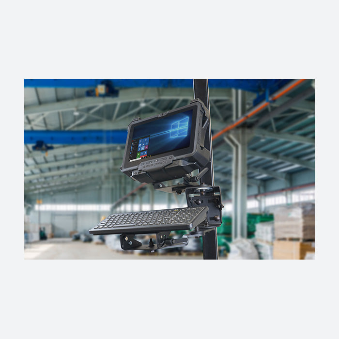 Providing versatile ergonomics, the Gamber Johnson Independent Keyboard Mount 7160-0550 attaches directly to a forklift overhead guard leg and is a great peripheral mount for completing a workstation. Featuring an AMPS and NEC hole pattern, the 7160-0550 is compatible with any keyboard or keyboard tray that has the same. Giving multiple points of rotation and swivel, the 7160-0550 also enables the keyboard to be tilted to the user's preferred angle. Pair the 7160-0550 keyboard mount with a Gamber Johnson clamshell type tablet mount and dock for a complete solution. If you have questions about the 7160-0550 or would like help developing a complete material handling solution, send your requirements to sales@ruggedordie.com and we will respond within 1 business day!
