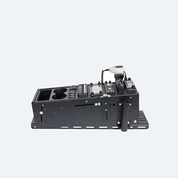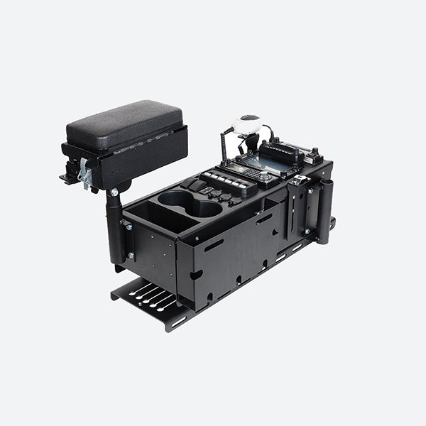 Designed to mount to either of the Gamber Johnson MCS top plates (long top plate 7160-0085 or short top plate 7160-0086) the 7160-0770 Universal Console can accommodate a number of different accessories (sold separately) such as armrests, cupholders, computer mounts, storage pockets and more. While the 7160-0770 is considered a universal console solution, the MCS top plates are typically mounted on vehicle specific leg kits and the 7160-0770 is limited by the mounting space available. Rugged or Die sales reps can help with any questions about the 7160-0770 or create a custom quote, email your requirements to sales@ruggedordie.com and we will respond within 1 business day.