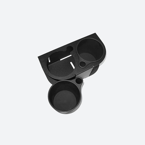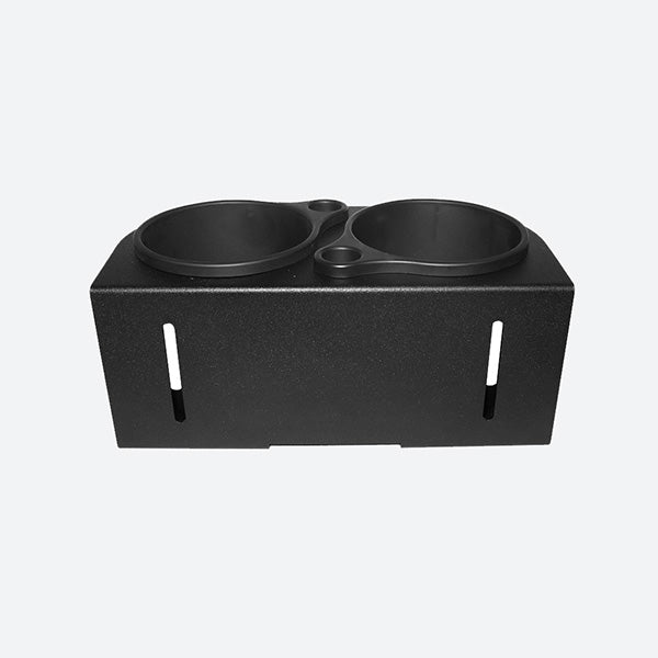 - Black powdercoat finish on metal bracket with opening for two individual cup inserts