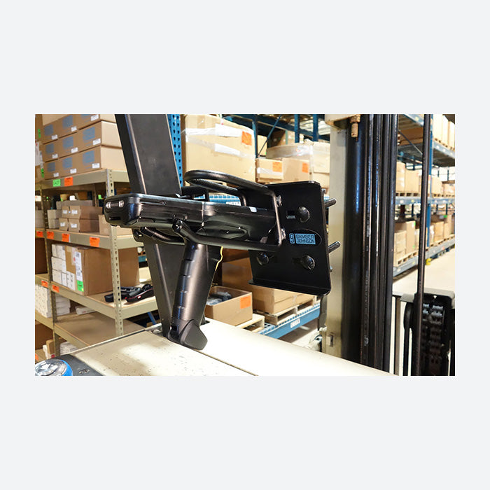 Able to mount to overhead forklift guard legs 1.5- 2.5 inches wide, the Gamber Johnson 7160-0854 Scanner Mount is a great mounting solution for a variety of different handheld barcode scanners. With black powder coated steel construction, the 7160-0854 is durable and built to last. Keeping the barcode scanner at an easy access location while staying securely mounted, the 7160-0854 is ideal for a material handling or warehouse management solution that depends on efficiency and dependability. Let a Rugged or Die sales rep assist in assembling a complete equipment package for your material handling needs, email your list of requirements to us at sales@ruggedordie.com and we will happily respond within one business day!
