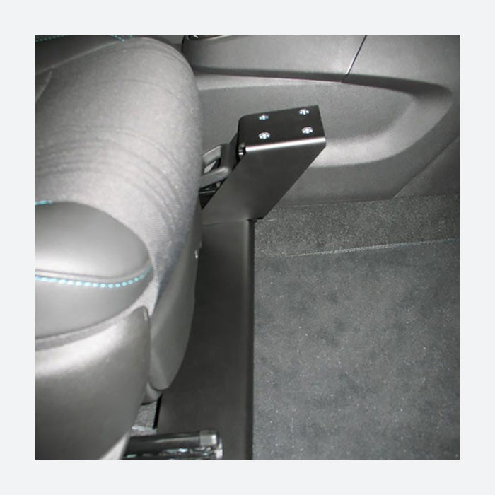- Base bolts to passenger side seat rails in existing holes. Seat does NOT have to be removed.