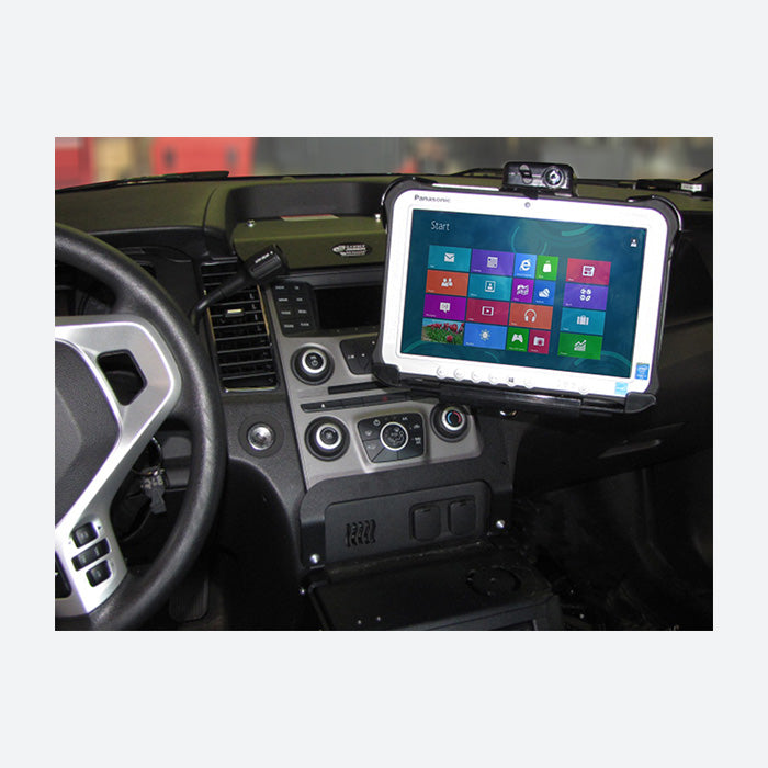 Compatible with the 2013-2019 Ford Police Interceptor Sedan vehicle, the Gamber Johnson Close-To-Dash Mount installs on the top of the dashboard and blends seamlessly into the Ford vehicle aesthetic. Providing a low profile mounting solution for a rugged tablet, the 7160-0871 includes a Clevis motion attachment that is compatible with most vehicle docks and cradles. The Clevis provides tilt and rotation to the mounted tablet ensuring ease of access and good ergonomics for the user. The top of the close to dash mount also features mounting points for additional equipment and devices. Let the Rugged or Die sales team assemble a custom equipment solution for your Ford vehicle, email your list of requirements to us at sales@ruggedordie.com and we will happily respond within one business day!