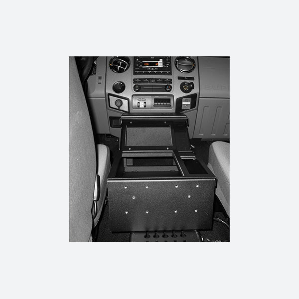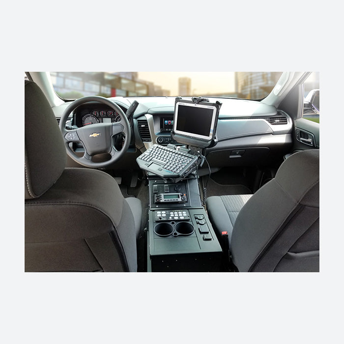 The Gamber Johnson 7160-0894 Console Box is a wide bodied solution with a longer horizontal storage portion and is designed to maximize the horizontal mounting space between driver and passenger seats. While leg kits are typically vehicle specific, if a leg kit and tunnel plate can be installed in the vehicle the 7160-0894 should be compatible provided the vehicle has the proper mounting space. The console box provides angled and mounting spaces for accessories or equipment such as radios or siren controls and includes pre-drilled mounting locations for a computer dock motion attachment. While the 7160-0894 console box is considered a universal solution, many mounting locations in vehicles are asymmetrical and should be measured thoroughly to ensure compatibility, send an email with your requirements or questions to sales@ruggedordie.com and our sales team can help ensure you are getting the optimal equipment for your in-vehicle workstation!