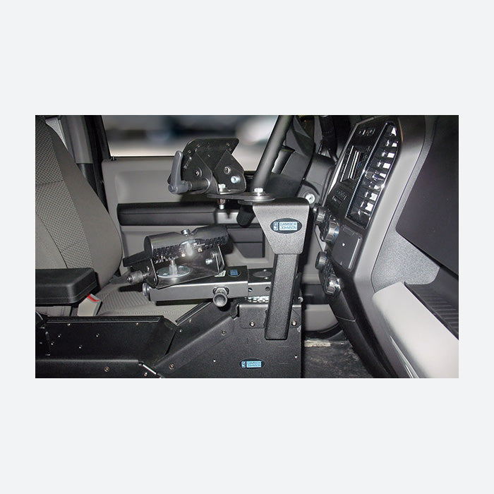 Built to be compatible with a number of Ford and Chevy vehicles (see specifications tab for full compatibility list) the Gamber Johnson Close-To-Dash Mount 7160-1010 is able to be mounted onto numerous different Gamber Johnson consoles and workstations. Providing a stable platform that installs on the top and side of the console, the 7160-1010 allows for tablet or laptop swivel and tilt creating an optimal ergonomic setup. Designed to position the mounted computer close to the vehicle dashboard, the mount maximizes cabin space and efficiency. The 7160-1010 should be paired with a vehicle dock or cradle and may not be compatible with competitor console setups. If you have questions about the 7160-1010, please give our sales team a call at 816-388-0035