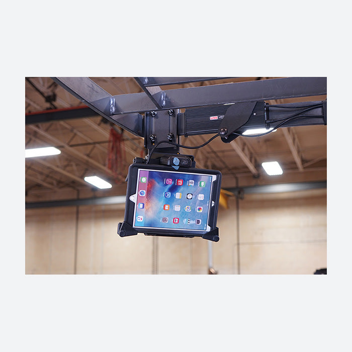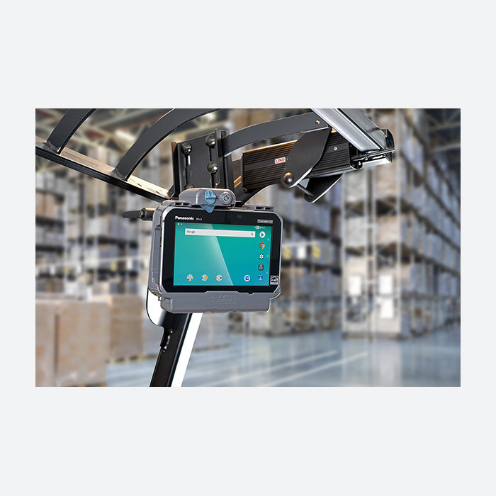 Ideal for a material handling tablet mount, the Gamber Johnson 7160-1156 can mount to an overhead guard bar on a forklift or work truck. The shorter design of the 7160-1156 allows users to position the mounted rugged tablet and ensure it is not obstructing sight lines. The included motion attachment can allow the user to swivel or tilt the tablet for optimized ergonomics. Rugged or Die is pleased to offer the entire Gamber Johnson catalog and can even quote an entire solution complete with a rugged tablet such as a Panasonic TOUGHBOOK FZ-G2 or Getac F110, send an email to sales@ruggedordie.com with your requirements and we will respond same business day!