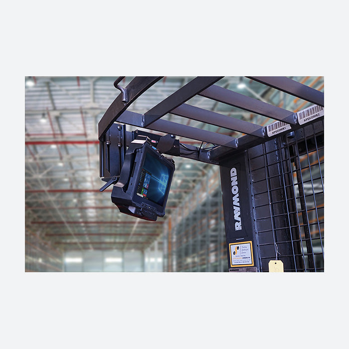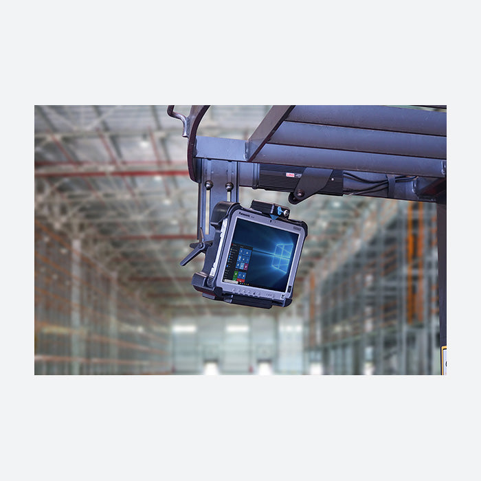 Ideal for a material handling tablet mount, the Gamber Johnson 7160-1156-01 can mount to an overhead guard bar on a forklift or work truck. The tall design of the 7160-1156-01 allows users to position the mounted rugged tablet to the optimal viewing height to ensure ease of use while not obstructing sight lines. The included motion attachment can allow the user to swivel or tilt the tablet for optimized ergonomics. Rugged or Die is pleased to offer the entire Gamber Johnson catalog and can even quote an entire solution complete with a rugged tablet such as a Panasonic TOUGHBOOK FZ-G2 or Getac F110, send an email to sales@ruggedordie.com with your requirements and we will respond same business day!