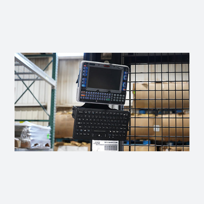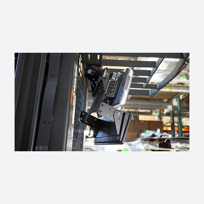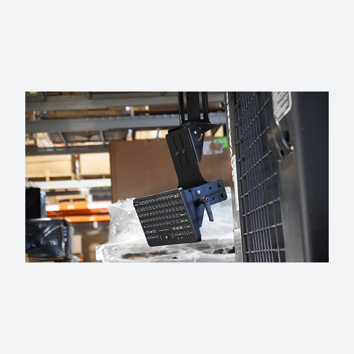 Ideal for mounting a rugged tablet and keyboard in numerous environments and locations, the Gamber Johnson Vertical Tablet Keyboard Mount 7160-1257-01 is a versatile and rugged solution. Providing a tall backplate, the 7160-1257-01 can accommodate small or large tablet docks and cradles and can position the tablet at the optimal height for viewing. Built to mount vertically, the Gamber Johnson 7160-1257-01 would work well as a wall mounted solution but is perfect for mounting a tablet or display and keyboard in on an overhead guard of a forklift or work truck. With the ability to tilt the keyboard, the keyboard mounting portion of the 7160-1257-01 can be positioned in front of the mounted tablet or directly beneath. The 7160-1257-01 features 2 different AMPs hole patterns to be able to mount any keyboard or mounting solution with an integrated AMPs mounting pattern. If you need assistance assembling the proper material handling equipment or converting the 7160-1257-01 into a full equipment solution including a tablet and keyboard, let a Rugged or Die sales rep provide a free consultation and hassle free quote! Give the Rugged or Die sales department a call at 816-388-0035.
