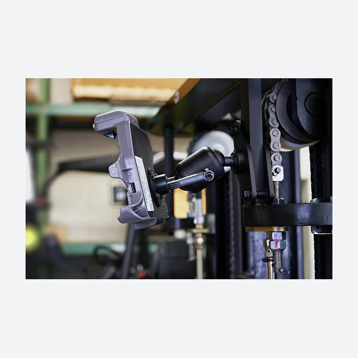 Providing a full mounting solution for a small device or peripheral, the Gamber Johnson 7160-1261 is a versatile and low profile mount that can accommodate up to 8 lbs. of weight in a vibrating or moving environment. Ideal for mounting a small tablet dock or cradle, a scanner, printer or other device in a material handling or warehouse management environment, the 7160-1261 comes with a 4 inch diamond base (Gamber Johnson part number 7160-1235) which can install the mount onto an overhead guard bar or leg. With a large Zirkona Joiner, the 7160-1261 can pivot and angle the device to the optimal viewing position. Featuring an AMPs mounting plate, the 7160-1261 can secure any dock, cradle or device with the same mounting pattern. If a VESA 75mm mounting plate is required, please consider the alternate Gamber Johnson part number 7160-1261-01. If you are needing help completing your forklift or work truck equipment solution, Rugged or Die sells the entire Gamber Johnson catalog as well as much of the required electronic equipment such as rugged computers and tablets, keyboards, Zebra and Brother printers, scanners and more! Email your requirements to sales@ruggedordie.com and we will respond within one business day!