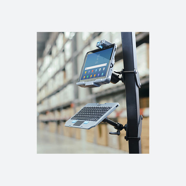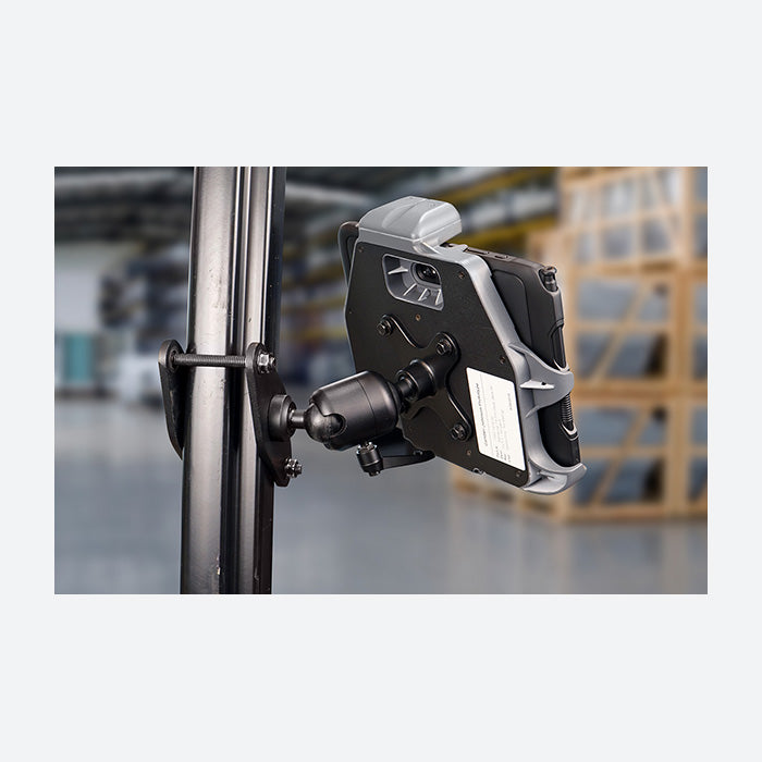 Providing a full mounting solution for a small device or peripheral, the Gamber Johnson 7160-1261-01 is a versatile and low profile mount that can accommodate up to 8 lbs. of weight in a vibrating or moving environment. Ideal for mounting a small tablet dock or cradle, a scanner, printer or other device in a material handling or warehouse management environment, the 7160-1261-01 comes with a 4 inch diamond base (Gamber Johnson part number 7160-1235) which can install the mount onto an overhead guard bar or leg. With a large Zirkona Joiner, the 7160-1261-01 can pivot and tilt the device to the optimal viewing and use angle. Featuring a VESA 75mm mounting plate, the 7160-1261-01 can secure any dock, cradle or device with the same mounting pattern. If you are needing help completing your forklift or work truck equipment solution, Rugged or Die sells the entire Gamber Johnson catalog as well as much of the required electronic equipment such as rugged computers and tablets, keyboards, Zebra and Brother printers, scanners and more! Email your requirements to sales@ruggedordie.com and we will respond within one business day!