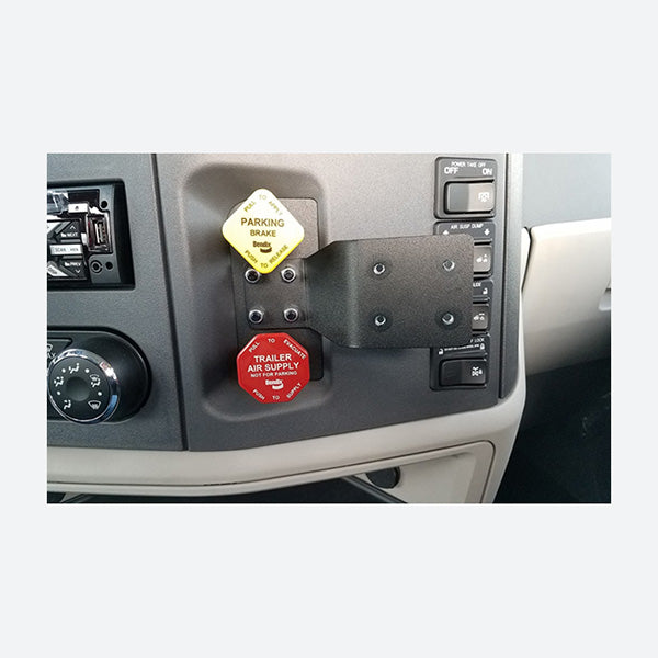 Designed as a drill-less installed solution for the Peterbilt 579, the Gamber Johnson 7160-1295 Dash Mount works with existing equipment and provides a convenience access point for mounting small devices. With knockouts already pre-cut for the OEM dash controls, the 7160-1295 can blend seamlessly with the Peterbilt dashboard and with the included AMPs mounting hole pattern accommodate a large variety of small device mounting solutions such as the Zirkona line of equipment. Perfect for mounting a phone holder, small tablet cradle or any ELD (electronic logging device) the 7160-1295 is built out of rugged materials to ensure the safest mounting solution for a small device. Let a Rugged or Die sales rep help complete your small device mounting solution, give our sales department a call at 816-388-0035 today!