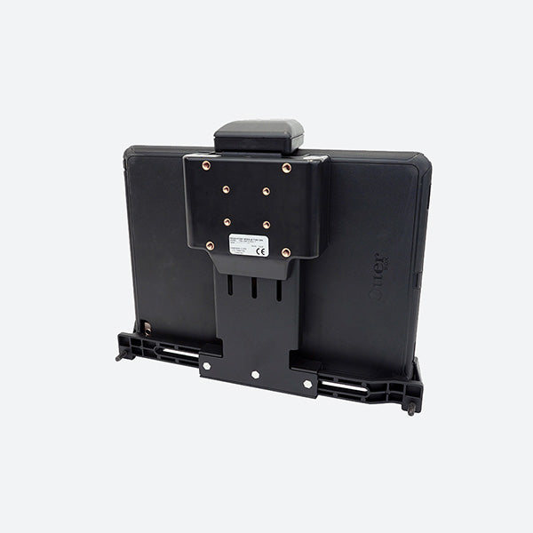 The NotePad Touch XL Universal Tablet Cradle 7160-1299-10 is compatible with a large variety of tablets (see specifications tab for full measurement compatibility list.) Able to have height, width and depth adjusted, the 7160-1299-10 can fit and secure most larger tablet computers. The Gamber Johnson universal tablet cradle for smaller tablets is part number 7160-1299-00. Featuring a high visibility locking latch the 7160-1299-10 can help protect against theft of the mounted tablet. Most rugged tablets such as the Panasonic CF-33 or Getac K120 have purpose built tablet cradles and docks which would be more of an optimized docking solution. If you are needing help to determine if the 7160-1299-10 is the right tablet cradle for your solution or need help developing a complete mounting solution for installing your tablet into a vehicle, Rugged or Die sales reps are happy to help answer any and all questions! Give us a call at 816-388-0035
