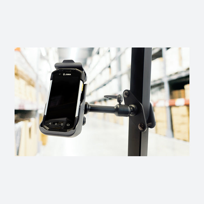Built for the Zebra TC7x Series handhelds, the Gamber Johnson Powered Cradle 7160-1509-01 is ideal for mounting the small device in a number of locations and environments. The 7160-1509-01 cradle allows the Zebra handheld to be charged while docked and allows a power supply (not included) to be attached to the computer without the need for undocking. Featuring an AMPs hole mounting pattern, the 7160-1509-01 is compatible with many material handling and warehouse management Zirkona low profile mounting solutions. The 7160-1509-01 can be purchased directly on ruggedordie.com or email us for a free quote at sales@ruggedordie.com