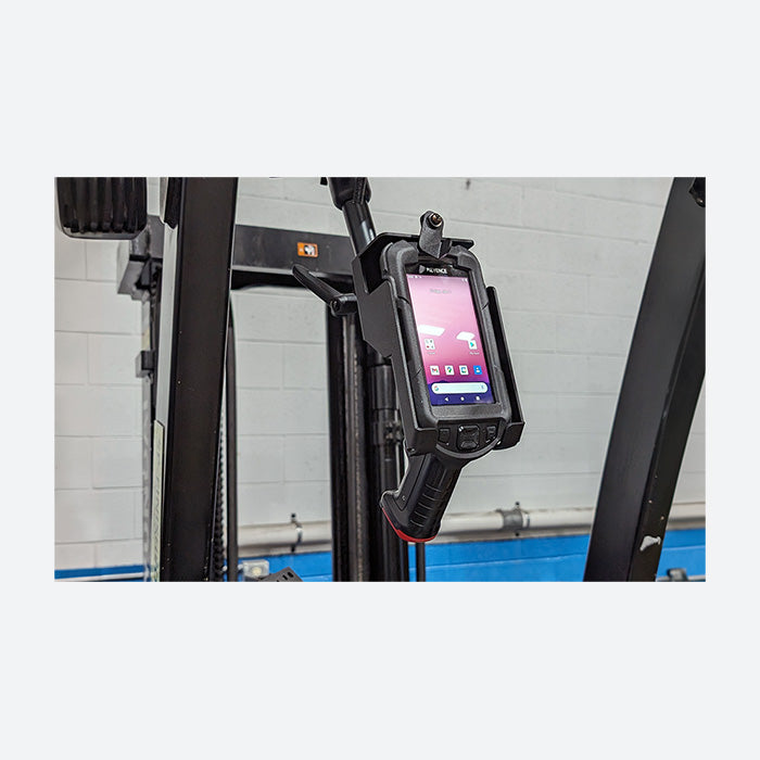Providing a durable cradle for the Keyence BT-A700 Scanner, the Gamber Johnson 7160-1695 can be mounted on a number of different pieces of equipment. Featuring a sliding latch, the 7160-1695 can be angled and still hold the Keyence scanner. This 7160-1695 cradle is built to simply hold the scanner securely but will not charge scanner while mounted. Featuring an AMPs hole pattern, the 7160-1695 can be mounted to any motion attachment that features the same pattern such as a Zirkona 7160-1531 or other mount. Rugged or Die sales reps can help assemble a complete equipment solution for your forklift or material handling use, contact us during regular business hours on our live chat or send us an email at sales@ruggedordie.com