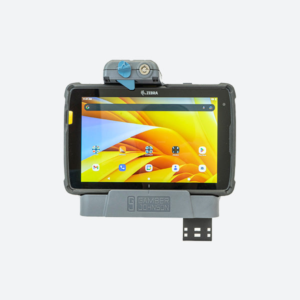 Zebra ET4X 8 inch SLIM Full Port Replicating Docking Station. Gamber-Johnson’s new Zebra vehicle docking station, with dual powered USBs, Serial, and ethernet port replication.
