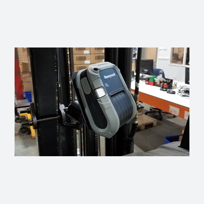 Built to mount the Honeywell RP2 Printer the Gamber Johnson 7160-1821 can secure the printer in a variety of mounting setups and locations. Paired with a forklift mounting base or a Zirkona vehicle mount, the 7160-1821 is a perfect peripheral mount for material handling and warehouse management. Keeping the printer in an optimal location, the 7160-1821 allows access to battery pack, printer ports and power connections as well as paper changing without the need to remove the printer from the mount. If you need assistance to complete your 7160-1821 mounting solution or are in the market for the Zebra printer as well, Rugged or Die sales reps would be pleased to answer any of your questions and or provide a no-hassle quote. Chat with us during our regular business hours Mon-Fri 8-6PM (Central.)