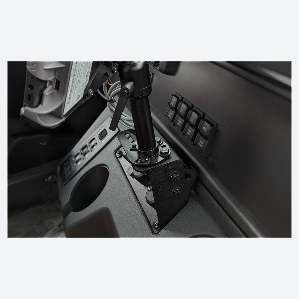 The Gamber Johnson 7160-1963 is designed to offer a stable but low profile mounting platform on and close to the dash of Freightliner M2 Plus and eM2 vehicles. Offering easy mounting to the OEM dash without requiring drilling, the 7160-1973 is a perfect base for small profile mounts such as the Zirkona line and can help mount an ELD (Electronic Logging Device) solution. If you need help developing a complete vehicle computer or small device mounting solution or are interested in purchasing the computer itself, Rugged or Die is please to offer free consultations and quotes.