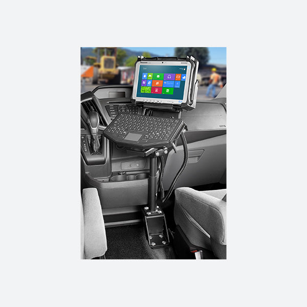 Compatible with 2015+ Ford Transit and 2016+ Mercedes-Benz Metris vehicles, the Gamber Johnson 7170-0226 is a drill-less computer mounting solution. Attaching to the passenger side seat bolts, the 7170-0226 features a 6 inch locking slide arm as well as a support brace to reduce computer vibrations and wear and tear. If you are still needing a computer dock or cradle or even a computer or tablet to complete your solution, a Rugged or Die sales account rep would be happy to assist!