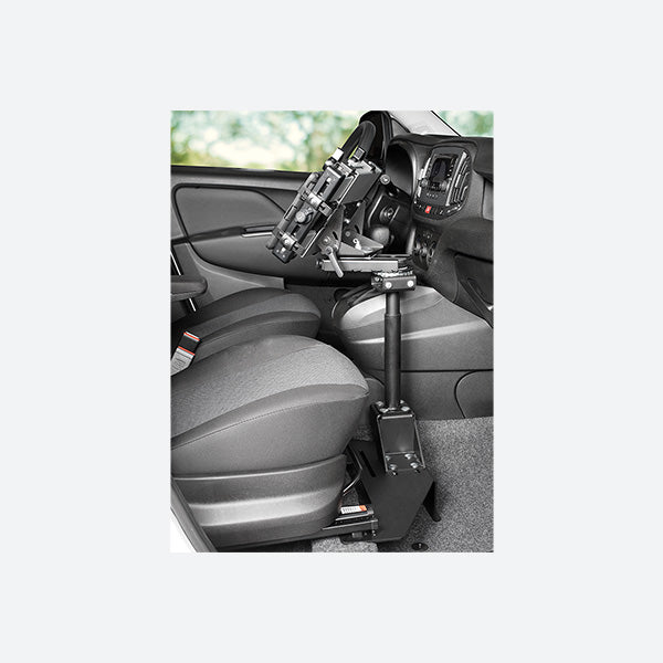 The Gamber Johnson 7170-0500 pedestal mounting system is built out of heavy gauge steel and is extremely durable. Compatible with the Ram ProMaster City from 2014 to current models, the 7170-0500 features a 6 inch locking slide arm motion attachment and a support brace to decrease vibrations and shocks from reaching the mounted computer dock. The 7170-0500 attaches to the passenger side seat bolts without the need for drilling into the vehicle. To complete the mounting solution, a computer dock or cradle would be needed to safely mount you computer; a Rugged or Die sales rep would be happy to help build you a custom quote for a complete mobile work station solution!