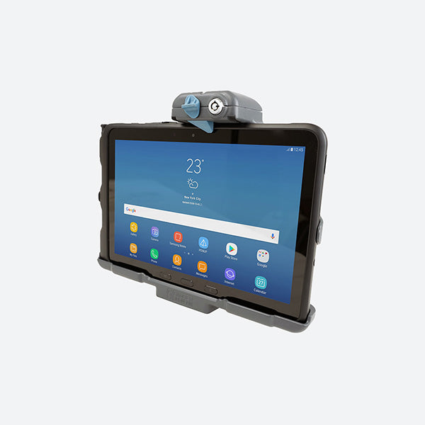 Samsung Galaxy Tab Active Pro/Tab Active4 Pro Docking Station with AC Power Adapter. Gamber Johnson docking station features dual powered USBs. Each USB port will deliver 1.5A of power with an integrated cable restraint system. The docking station is compact, has a keyed lock, and docking/release is a simple, one-handed operation. This dock features an MP205 power cable connector to attach to the AC power adapter included in this kit.