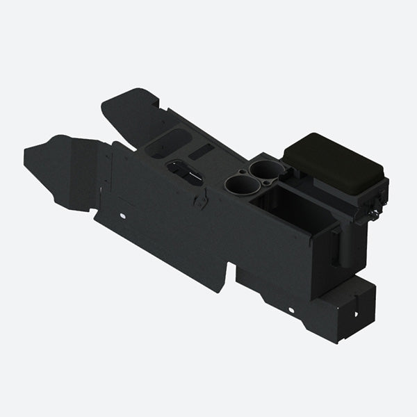 Low profile, no-drill vehicle specific console box Accommodates shifter A traction control/OEM plate (needed only if vehicle has a traction control module) Easily mounts right to transmission hump, does not require a Leg Kit or MCS Top Plate A removable center brace for easy radio installation and wire routing Ships with dash filler panels that gives the box a sleek appearance that blends in with the car's aesthetics Threaded PEM's provided for rear mounted armrest to the console 1, 12 Volt and 2 switch knock-outs (located on shifter faceplate) Heavy gauge steel, fully welded construction for long-term durability Black powdercoat finish for maximum corrosion resistance Will ship fully assembled Includes 3 faceplates and 3 filler panels Horizontal section: Section accommodates 13" of mounting space without cup holder and is designed to house radio control heads and accessories With traction control faceplate = 7.5" of mounting internal height With traction control faceplate = 10" of mounting space With traction control faceplate and Internal cup holder = 5.5" of mounting space Designed to house full sized devices and accessories Vertical, angled sections: Angled section accommodates 5" of mounting space and is designed to house radio control heads and accessories