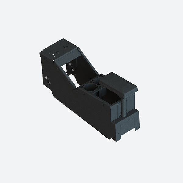 Gamber Johnson low-profile console kit for 2020+ Ford Police Interceptor Utility. Console kit includes console box, internal cup holder and rear armrest.