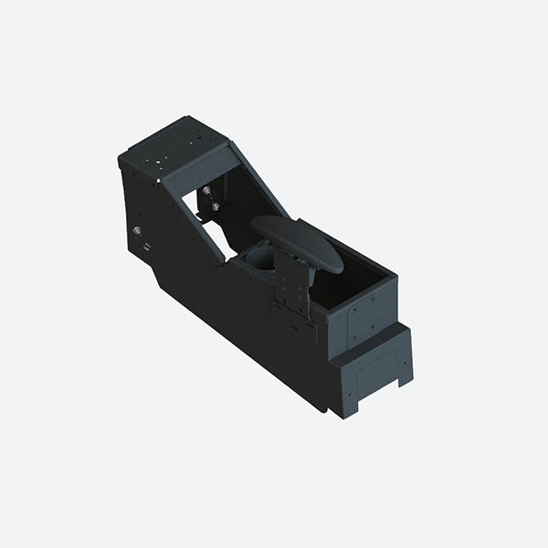 Gamber Johnson low-profile console kit for 2020+ Ford Police Interceptor Utility. Console kit includes console box, cup holder and side armrest.