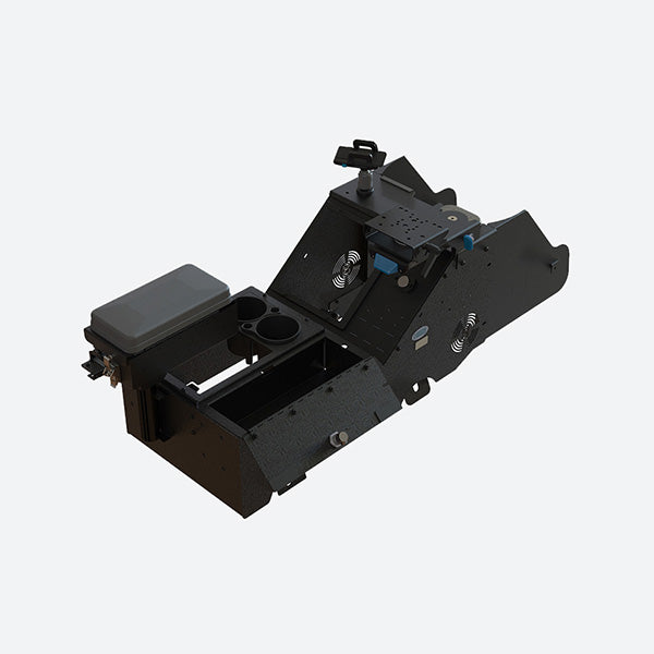 Gamber Johnson wide body console kit for the 2021-2024 Chevrolet Tahoe. Console kit comes complete with console, cupholder, printer armrest, magnetic cell phone holder, magnetic mic clip and Mongoose XLE 9 inch motion attachment. This Gamber Johnson console maximizes mounting space while the locking side pocket ensures security for valuables or documents.