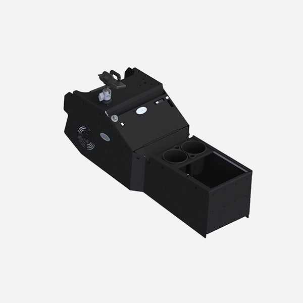 Gamber Johnson 2021+ Dodge Durango Standard Console Box Kit with Printer Mount, Magnetic Phone Holder, and Cup Holder.