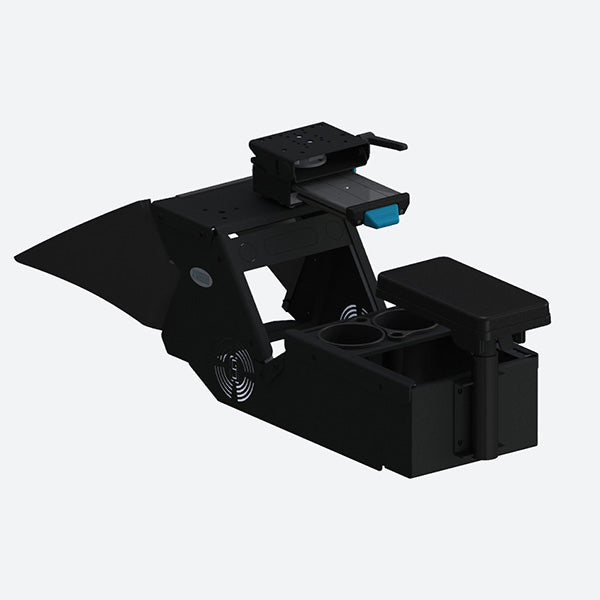 Gamber Johnson 2021+ Dodge Charger Console Box (Short 10.5-in.) Kit with Cup Holder. Vehicle specific mounting solution with a shortened length to provide extra clearance when retrieving weapons or equipment from behind the front seats.
