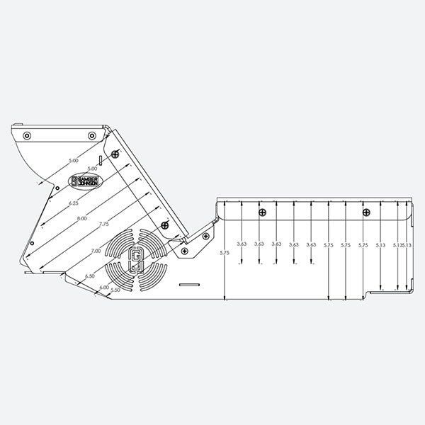 Horizontal section accommodates 13" of mounting space or 8.5" of mounting space with cup holder