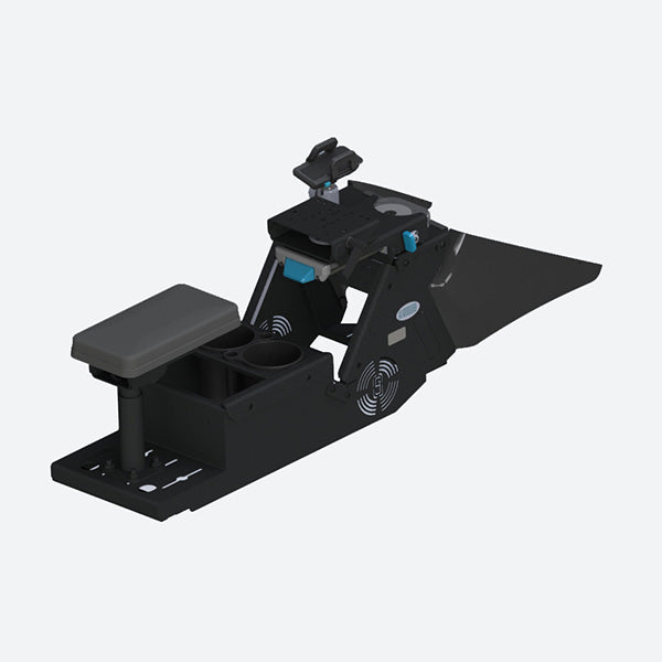 2021+ Dodge Charger Console (Short 8.5-in.) Kit with Magnetic Phone Holder, Cup Holder, Break-Away Rear Armrest, and Mongoose XLE 9-in. Motion Attachment features a shortened length to provide extra clearance when retrieving weapons while the break-away rear armrest maximizes space when not in use.