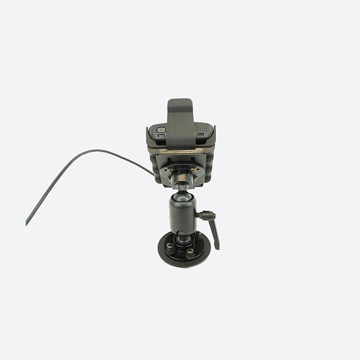 Gamber Johnson Zebra TC22/TC27 Cradle w/Zirkona Medium Joiner Mount. Combining the Gamber Johnson Zebra TC22/TC27 handheld computer cradle with the Zirkona medium joiner to achieve a reliable and secure mounting solution for material handling environments. Adjustable to any angle and adaptable to various lift vehicles.