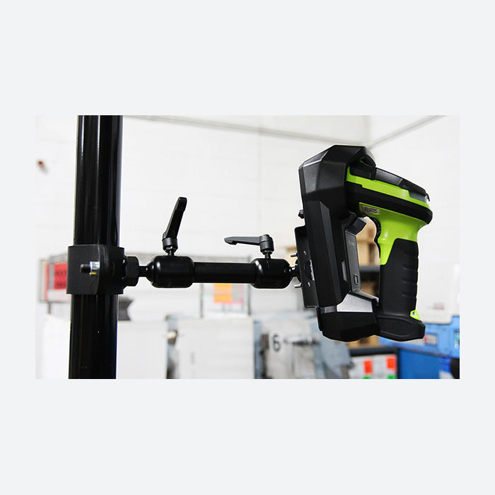 Mount the Zebra FLB3678 or STB3678 cradle to any 2? to 3? round pole with Gamber-Johnsons Zirkona 6? dogbone to achieve a reliable and secure mounting solution for material handling environments. Adjustable to any angle and adaptable to various vehicles, our Zirkona solution allows movement, flexibility, and customization to fulfill your specific mounting needs.
