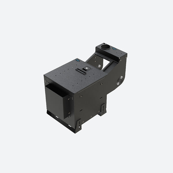Gamber Johnson Mobile Workstation kit secures documents and valuables with its locking lid and provides ample storage space. Kit includes small internal storage tray/pocket, adjustable armrest and radio platform.